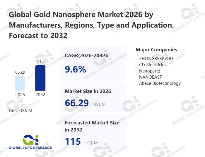 Global Info Research has recently published "Global Gold Nanosphere Market 2026 by Manufacturers, Regions, Type and Application, Forecast to 2032". This report systematically analyzes the global Gold Nanosphere market, providing multi-dimensional insights through type (≤50nm、 >50nm), application (Scientific Research、 Pharmaceuticals), regional markets, and major manufacturers (ZHONGKEKEYOU、 CD Bioarticles、 Nanopartz、 NANOEAST、 Abace Biotechnology), assessing the market status, trend evolution, and competitive landscape impact from 2021 to 2032.