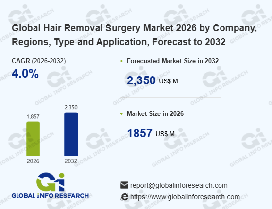 Global Info Research has recently published "Global Hair Removal Surgery Market 2026 by Manufacturers, Regions, Type and Application, Forecast to 2032". This report systematically analyzes the global Hair Removal Surgery market, providing multi-dimensional insights through type (Head、 Eyebrows、 Eyelashes、 Armpits、 Genital Area、 Arms、 Legs、 Others), application (Hospital、 Clinic), regional markets, and major manufacturers (Syneron Medical Ltd、 Sciton, Inc、 Alma Lasers, Ltd、 Cynosure, Inc、 Cutera, Inc、 Lumenis Ltd、 Lutronic Corp、 Lynton Lasers Ltd、 Solta Medical, Inc、 NHS、 CUTERA), assessing the market status, trend evolution, and competitive landscape impact from 2021 to 2032.