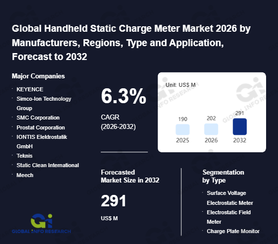 Global Info Research has recently published "Global Handheld Static Charge Meter Market 2026 by Manufacturers, Regions, Type and Application, Forecast to 2032". This report systematically analyzes the global Handheld Static Charge Meter market, providing multi-dimensional insights through type (Surface Voltage Electrostatic Meter、 Electrostatic Field Meter、 Charge Plate Monitor), application (ESD Control Inspection、 Cleanroom Static Monitoring、 Industrial Electrostatic Testing、 Material Surface Charge Measurement), regional markets, and major manufacturers (KEYENCE、 Simco-Ion Technology Group、 SMC Corporation、 Prostat Corporation、 IONTIS Elektrostatik GmbH、 Teknis、 Static Clean International、 Meech、 Tianjin Celiss Automation Technology Co., Ltd、 Tronovo、 Horb、 Monroe), assessing the market status, trend evolution, and competitive landscape impact from 2021 to 2032.