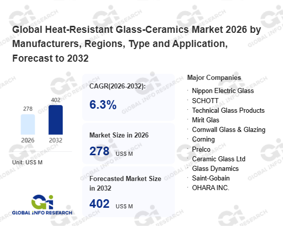 Global Info Research has recently published "Global Heat-Resistant Glass-Ceramics Market 2026 by Manufacturers, Regions, Type and Application, Forecast to 2032". This report systematically analyzes the current status, future trends (2021-2032), and competitive landscape of the global Heat-Resistant Glass-Ceramics market. It provides a quantitative analysis from the perspectives of type (Flat Glass、 Curved Glass), application (Industrial、 Electronic Product、 Consumer Goods、 Others), regional markets, and major manufacturers (Nippon Electric Glass、 SCHOTT、 Technical Glass Products、 Mirit Glas、 Cornwall Glass & Glazing、 Corning、 Prelco、 Ceramic Glass Ltd、 Glass Dynamics、 Saint-Gobain、 OHARA INC.、 EuroKera、 Suzhou Jorinn New Materials Technology、 Dongguan Hongxi Glass Intelligent Technology), comprehensively assessing market opportunities and competitive dynamics.
