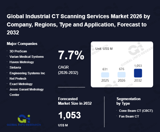 Global Info Research has recently published "Global Industrial CT Scanning Services Market 2026 by Manufacturers, Regions, Type and Application, Forecast to 2032". This report systematically analyzes the global Industrial CT Scanning Services market, providing multi-dimensional insights through type (Cone Beam CT (CBCT)、 Fan Beam CT), application (Reverse Engineering、 Metrology、 Defect Analysis、 Material Analysis、 Failure Analysis), regional markets, and major manufacturers (3D ProScan、 Varian Medical Systems、 Haven Metrology、 Sintavia、 Engineering Systems Inc、 Nel Pretech、 Exact Metrology、 Jesse Garant Metrology Center、 CAD / CAM Services、 Alloyweld Inspection、 Q-PLUS Labs、 3D Engineering Solutions、 Castem Technology Laboratories、 Baker Hughes Company、 Applied Technical Services), assessing the market status, trend evolution, and competitive landscape impact from 2021 to 2032.