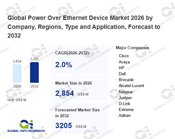 Global Info Research has recently published "Global Power Over Ethernet Device Market 2026 by Manufacturers, Regions, Type and Application, Forecast to 2032". This report systematically analyzes the global Power Over Ethernet Device market, providing multi-dimensional insights through type (Power Over Ethernet Switch、 Power Over Ethernet IP Phone), application (Enterprise、 Government、 School、 Others), regional markets, and major manufacturers (Cisco、 Avaya、 HP、 Dell、 Brocade、 Alcatel-Lucent、 Netgear、 Juniper、 D-Link、 Extreme、 Adtran、 Alaxala、 Huawei、 ZTE), assessing the market status, trend evolution, and competitive landscape impact from 2021 to 2032.