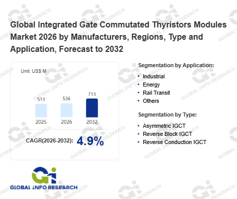 Global Info Research has recently published "Global Integrated Gate Commutated Thyristors Modules Market 2026 by Manufacturers, Regions, Type and Application, Forecast to 2032". This report systematically analyzes the global Integrated Gate Commutated Thyristors Modules market, providing multi-dimensional insights through type (Asymmetric IGCT、 Reverse Block IGCT、 Reverse Conduction IGCT), application (Industrial、 Energy、 Rail Transit、 Others), regional markets, and major manufacturers (Hitachi Energy、 CSR Zhuzhou Institute Co, Ltd. (CRRC)), assessing the market status, trend evolution, and competitive landscape impact from 2021 to 2032.