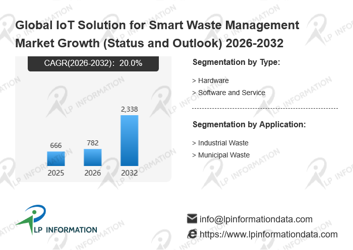 The global IoT Solution for Smart Waste Management market size is predicted to grow from US$ 666 million in 2025 to US$ 2338 million in 2032; it is expected to grow at a CAGR of 20.0% from 2026 to 2032.