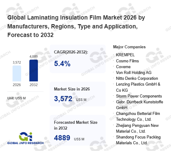 Global Info Research has recently published "Global Laminating Insulation Film Market 2026 by Manufacturers, Regions, Type and Application, Forecast to 2032". This report systematically analyzes the current status, future trends (2021-2032), and competitive landscape of the global Laminating Insulation Film market. It provides a quantitative analysis from the perspectives of type (Thermal Insulating Film、 Electrically Insulating Film、 Composite Functional Insulating Film), application (Electronics、 Building Materials、 Automotive、 Aerospace、 Others), regional markets, and major manufacturers (KREMPEL、 Cosmo Films、 Coveme、 Von Roll Holding AG、 Nitto Denko Corporation、 Lenzing Plastics GmbH & Co KG、 Storm Power Components、 Gebr. Dürrbeck Kunststoffe GmbH、 Changzhou Betterial Film Technology Co., Ltd.、 Zhejiang Pengyuan New Material Co., Ltd.、 Shandong Focus Packing Materials Co., Ltd.、 Guangxi Anxin New Material Technology Co., Ltd.、 Guangzhou Zanchen New Material Technology Co., Ltd.), comprehensively assessing market opportunities and competitive dynamics.