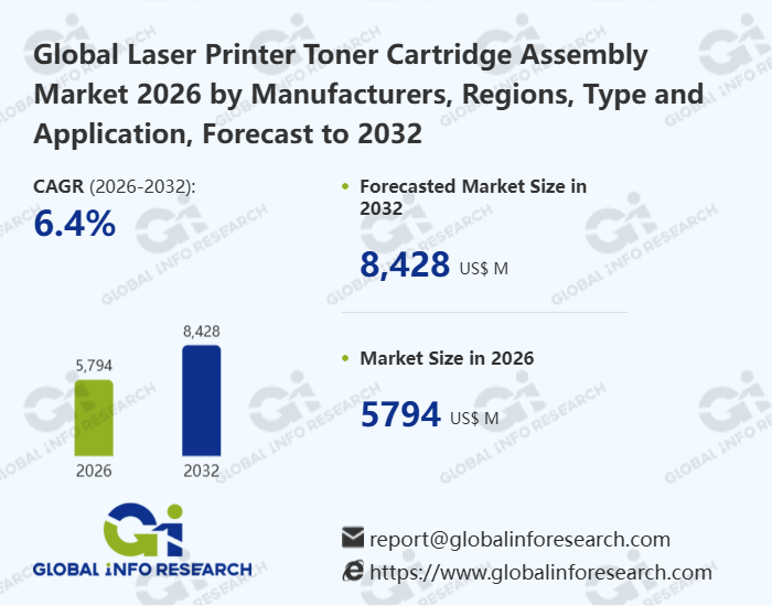 Global Info Research has recently published "Global Laser Printer Toner Cartridge Assembly Market 2026 by Manufacturers, Regions, Type and Application, Forecast to 2032". This report systematically analyzes the global Laser Printer Toner Cartridge Assembly market, providing multi-dimensional insights through type (Genuine、 Compatible、 Others), application (Commercial Use、 Office Use、 Others), regional markets, and major manufacturers (HP、 Brother、 SAMSUNG、 EPSON、 FujiXerox、 German Imaging Technologies、 Canon、 Panasonic、 RICOH、 CIG、 Lexmark、 DELI、 PrintRite), assessing the market status, trend evolution, and competitive landscape impact from 2021 to 2032.