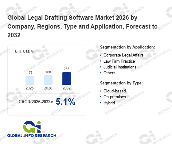Global Info Research has recently published "Global Legal Drafting Software Market 2026 by Manufacturers, Regions, Type and Application, Forecast to 2032". This report systematically analyzes the current status, future trends (2021-2032), and competitive landscape of the global Legal Drafting Software market. It provides a quantitative analysis from the perspectives of type (Cloud-based、 On-premises、 Hybrid), application (Corporate Legal Affairs、 Law Firm Practice、 Judicial Institutions、 Others), regional markets, and major manufacturers (Litera Draft、 Spellbook、 Paxton AI、 Aline、 Legora、 ClauseBase、 lexisnexis、 DocJuris、 Thomson Reuters、 Juro、 SpotDraft、 Clarilis、 Gavel Exec、 Clio Draft、 Icertis), comprehensively assessing market opportunities and competitive dynamics.