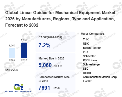 Global Info Research has recently published "Global Linear Guides for Mechanical Equipment Market 2026 by Manufacturers, Regions, Type and Application, Forecast to 2032". This report systematically analyzes the global Linear Guides for Mechanical Equipment market, providing multi-dimensional insights through type (Roller Linear Guide、 Ball Linear Guide、 Cylindrical Linear Guide), application (CNC Machine Tools、 Printing Machine、 Electronic Equipment、 Others), regional markets, and major manufacturers (THK、 NSK、 Bosch Rexroth、 IKO、 Schaeffler、 PBC Linear、 Schneeberger、 SBC、 Rollon、 Altra Industrial Motion Corp、 Ewellix、 ME Technology、 Matara UK、 Shangyin Technology (China) Co., Ltd.、 Intime Technology (Shanghai) Co., Ltd. (Company)、 Guangdong Kate Precision Machinery Co., Ltd.、 Shandong Saier Machinery、 General Technology Group Dalian Machine Tool、 Nanjing Technology Equipment Manufacturing Co., Ltd.、 Maanshan Dekai Precision Tool Technology), assessing the market status, trend evolution, and competitive landscape impact from 2021 to 2032.