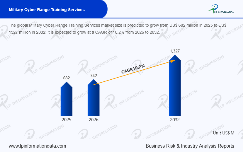 The global Military Cyber Range Training Services market size is predicted to grow from US$ 682 million in 2025 to US$ 1327 million in 2032; it is expected to grow at a CAGR of 10.2% from 2026 to 2032.