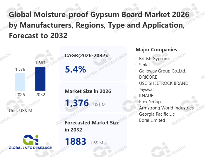 Global Info Research has recently published "Global Moisture-proof Gypsum Board Market 2026 by Manufacturers, Regions, Type and Application, Forecast to 2032". This report systematically analyzes the global Moisture-proof Gypsum Board market, providing multi-dimensional insights through type (Ordinary Moisture-Resistant Plasterboards、 Locating Point Moisture-Resistant Plasterboards), application (Household、 Commercial), regional markets, and major manufacturers (British Gypsum、 Siniat、 Galloway Group Co.,Ltd.、 DRICORE、 USG SHEETROCK BRAND、 Jayswal、 KNAUF、 Etex Group、 Armstrong World Industries、 Georgia Pacific Llc、 Boral Limited、 Fletcher Building Limited、 National Gypsum Company), assessing the market status, trend evolution, and competitive landscape impact from 2021 to 2032.