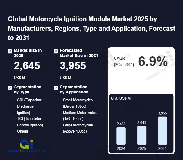 Global Info Research has recently published "Global Motorcycle Ignition Module Market 2026 by Manufacturers, Regions, Type and Application, Forecast to 2032". This report systematically analyzes the current status, future trends (2021-2032), and competitive landscape of the global Motorcycle Ignition Module market. It provides a quantitative analysis from the perspectives of type (CDI (Capacitor Discharge Ignition)、 TCI (Transistor Control Ignition)、 Others), application (Small Motorcycles (Below 150cc)、 Medium Motorcycles (150–400cc)、 Large Motorcycles (Above 400cc)), regional markets, and major manufacturers (Shindengen、 Compu-Fire、 Daytona Twin Tec、 Dynojet、 S&S Cycle、 Thunder Heart Performance、 Dynatek、 KEDO、 PME、 Asia Traffic、 Taiwan Ignition System), comprehensively assessing market opportunities and competitive dynamics.