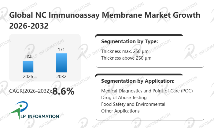 The global NC Immunoassay Membrane market size is predicted to grow from US$ 101 million in 2025 to US$ 171 million in 2032; it is expected to grow at a CAGR of 8.6% from 2026 to 2032.