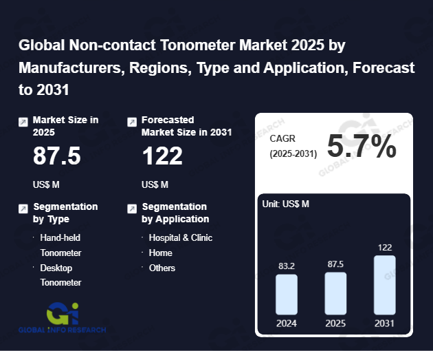 Global Info Research has recently published "Global Non-contact Tonometer Market 2026 by Manufacturers, Regions, Type and Application, Forecast to 2032". This report systematically analyzes the current status, future trends (2021-2032), and competitive landscape of the global Non-contact Tonometer market. It provides a quantitative analysis from the perspectives of type (Hand-held Tonometer、 Desktop Tonometer), application (Hospital & Clinic、 Home、 Others), regional markets, and major manufacturers (Keeler、 Reichert、 Topcon、 Haag-Streit、 Nidek、 Icare、 Kowa、 Tomey、 Canon、 Macro、 Rexxam、 Huvitz、 Oculus、 Ziemer Group、 Diaton), comprehensively assessing market opportunities and competitive dynamics.