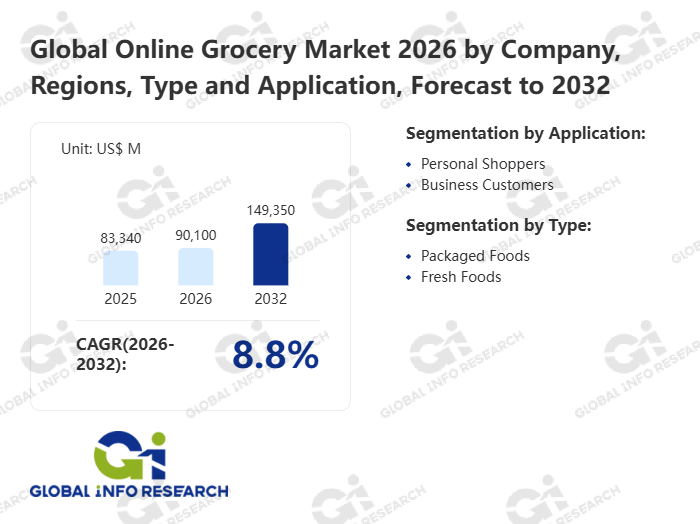 Global Info Research has recently published "Global Online Grocery Market 2026 by Manufacturers, Regions, Type and Application, Forecast to 2032". This report systematically analyzes the current status, future trends (2021-2032), and competitive landscape of the global Online Grocery market. It provides a quantitative analysis from the perspectives of type (Packaged Foods、 Fresh Foods), application (Personal Shoppers、 Business Customers), regional markets, and major manufacturers (Carrefour、 Kroger、 Tesco、 Walmart、 Amazon、 Target、 Alibaba、 Coles Online、 BigBasket、 Longo、 Schwan Food、 ALDI、 FreshDirect、 Honestbee、 Instacart、 Shipt、 Pinduoduo、 Ocado、 Boxed、 JD、 Hema、 Meituan Grocery), comprehensively assessing market opportunities and competitive dynamics.