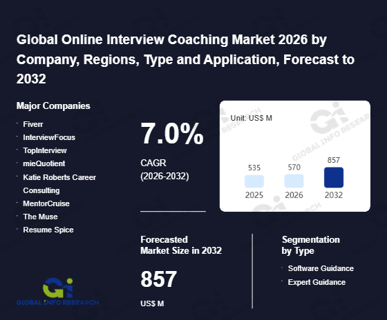 Global Info Research has recently published "Global Online Interview Coaching Market 2026 by Manufacturers, Regions, Type and Application, Forecast to 2032". This report systematically analyzes the global Online Interview Coaching market, providing multi-dimensional insights through type (Software Guidance、 Expert Guidance), application (Individual、 Organization), regional markets, and major manufacturers (Fiverr、 InterviewFocus、 TopInterview、 mieQuotient、 Katie Roberts Career Consulting、 MentorCruise、 The Muse、 Resume Spice、 Thumbtack、 Entry Level Career Coaching (ELCC)、 Jody Michael Associates、 Big Interview、 Apex Career Services、 The Job Sauce、 Find My Profession、 iCareer Solutions、 Skillful、 Expert Interview Coaching Services、 Levels.fyi、 Sarah Robinson Coaching), assessing the market status, trend evolution, and competitive landscape impact from 2021 to 2032.