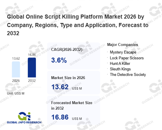 Global Info Research has recently published "Global Online Script Killing Platform Market 2026 by Manufacturers, Regions, Type and Application, Forecast to 2032". This report systematically analyzes the current status, future trends (2021-2032), and competitive landscape of the global Online Script Killing Platform market. It provides a quantitative analysis from the perspectives of type (Real-Time Interactive Script Killing Platform、 Independent Puzzle-Solving Script-Killing Platform、 Others), application (Individual、 Team), regional markets, and major manufacturers (Mystery Escape、 Lock Paper Scissors、 Hunt A Killer、 Sleuth Kings、 The Detective Society), comprehensively assessing market opportunities and competitive dynamics.
