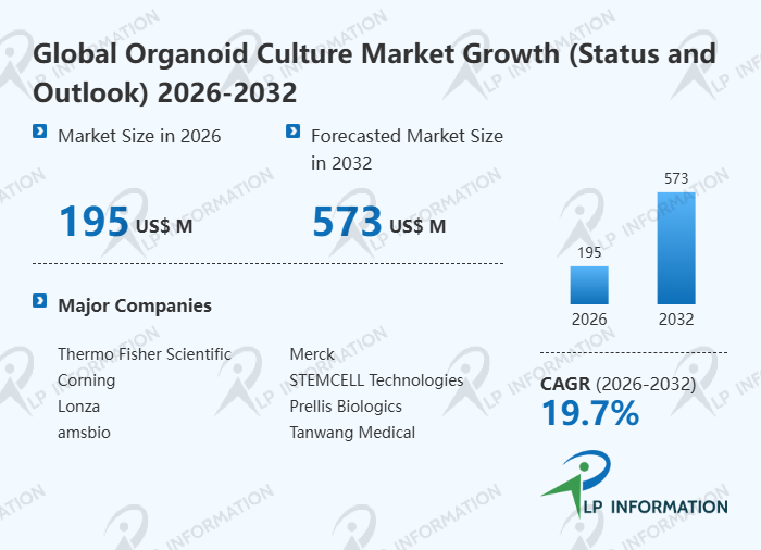 The global Organoid Culture market size is predicted to grow from US$ 166 million in 2025 to US$ 573 million in 2032; it is expected to grow at a CAGR of 19.7% from 2026 to 2032.