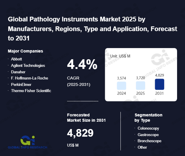 Global Info Research has recently published "Global Pathology Instruments Market 2026 by Manufacturers, Regions, Type and Application, Forecast to 2032". This report systematically analyzes the global Pathology Instruments market, providing multi-dimensional insights through type (Colonoscopy、 Gastroscope、 Bronchoscope、 Other), application (Hospital、 Clinic、 Medical Center、 Other), regional markets, and major manufacturers (Abbott、 Agilent Technologies、 Danaher、 F. Hoffmann-La Roche、 PerkinElmer、 Thermo Fisher Scientific), assessing the market status, trend evolution, and competitive landscape impact from 2021 to 2032.