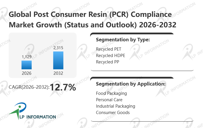 The global Post Consumer Resin (PCR) Compliance market size is predicted to grow from US$ 1003 million in 2025 to US$ 2315 million in 2032; it is expected to grow at a CAGR of 12.7% from 2026 to 2032.