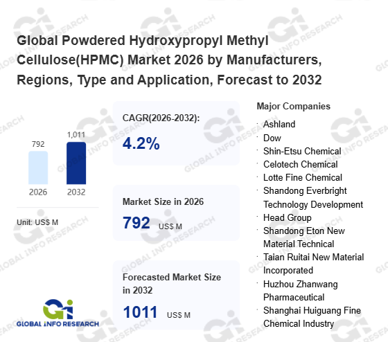 Global Info Research has recently published "Global Powdered Hydroxypropyl Methyl Cellulose(HPMC) Market 2026 by Manufacturers, Regions, Type and Application, Forecast to 2032". This report systematically analyzes the current status, future trends (2021-2032), and competitive landscape of the global Powdered Hydroxypropyl Methyl Cellulose(HPMC) market. It provides a quantitative analysis from the perspectives of type (Industrial Grade、 Daily Chemical Grade、 Pharmaceutical Grade), application (Paint & Coatings、 Personal Care and Cosmetics、 Construction Industry、 Medicine、 Other), regional markets, and major manufacturers (Ashland、 Dow、 Shin-Etsu Chemical、 Celotech Chemical、 Lotte Fine Chemical、 Shandong Everbright Technology Development、 Head Group、 Shandong Eton New Material Technical、 Taian Ruitai New Material Incorporated、 Huzhou Zhanwang Pharmaceutical、 Shanghai Huiguang Fine Chemical Industry、 Zhejiang Haishen New Materials、 Mikazone、 LANDU、 Feicheng Yutian Chemical、 Hebei Huayi Cellulose), comprehensively assessing market opportunities and competitive dynamics.