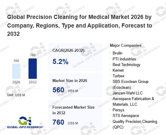 Global Info Research has recently published "Global Precision Cleaning for Medical Market 2026 by Manufacturers, Regions, Type and Application, Forecast to 2032". This report systematically analyzes the current status, future trends (2021-2032), and competitive landscape of the global Precision Cleaning for Medical market. It provides a quantitative analysis from the perspectives of type (Aqueous Cleaning for Medical Parts、 Ultrasonic Cleaning for Medical Parts、 Solvent Cleaning for Medical Parts、 Others), application (Medical Devices Parts Cleaning、 Medical Implants Cleaning), regional markets, and major manufacturers (Brulin、 PTI Industries、 Best Technology、 Kemet、 Turbex、 SBS Ecoclean Group (Ecoclean)、 Janzen-Wahl LLC、 Aerospace Fabrication & Materials, LLC.、 Persys、 STS Aerospace、 Quality Precision Cleaning (QPC)、 Precision Chemical Cleaning、 Thermionics Metal Processing, Inc (TMPI)、 Precision Iceblast Corporation、 Pacific Magnetic and Penetrant、 ACM (Advanced Cleanroom Microclean)、 Ultrasonic Cleaning Company、 OHKAWA CORPORATION、 Clean Imagineering、 Mitsubishi Precision), comprehensively assessing market opportunities and competitive dynamics.