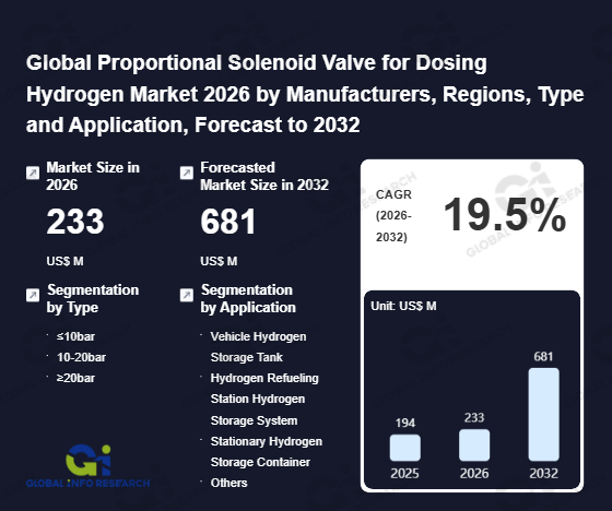 Global Info Research has recently published "Global Proportional Solenoid Valve for Dosing Hydrogen Market 2026 by Manufacturers, Regions, Type and Application, Forecast to 2032". This report systematically analyzes the global Proportional Solenoid Valve for Dosing Hydrogen market, providing multi-dimensional insights through type (≤10bar、 10-20bar、 ≥20bar), application (Vehicle Hydrogen Storage Tank、 Hydrogen Refueling Station Hydrogen Storage System、 Stationary Hydrogen Storage Container、 Others), regional markets, and major manufacturers (Emerson、 Magnetbau Schramme、 Staiger、 Magnet Schultz、 CKD、 PARKER、 Bürkert、 Clippard、 Bitron、 Takano、 VHIT), assessing the market status, trend evolution, and competitive landscape impact from 2021 to 2032.