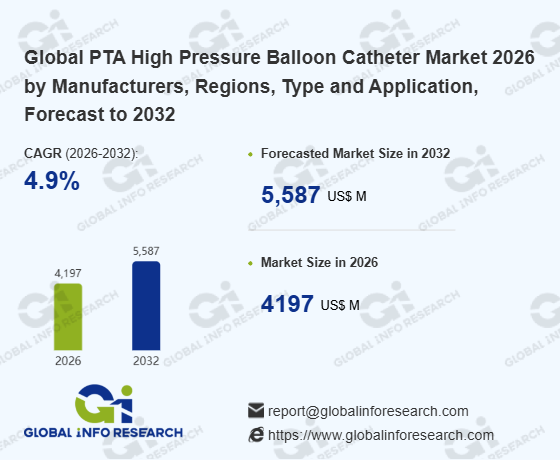 Global Info Research has recently published "Global PTA High Pressure Balloon Catheter Market 2026 by Manufacturers, Regions, Type and Application, Forecast to 2032". This report systematically analyzes the current status, future trends (2021-2032), and competitive landscape of the global PTA High Pressure Balloon Catheter market. It provides a quantitative analysis from the perspectives of type (Polyurethane Balloons、 Nylon Balloons、 Silicone Balloons、 Others), application (Coronary Artery Disease、 Peripheral Vascular Disease), regional markets, and major manufacturers (Boston Scientific Corporation、 Nipro Corporation Japan、 Medtronic Plc、 BD、 B. Braun、 Cook Medical、 Cordis Corporation、 Acandis GmbH、 Terumo Corporation、 Abbott、 OrbusNeich、 Biomerics、 Merit Medical Systems, Inc.、 NuMED、 Mermaid Medical Group、 MicroPort Scientific、 Lepu Medical Technology (Beijing) Co Ltd、 Meril(Bilakhia Group)、 BIOTRONIK、 BrosMed Medical、 JOTEC GmbH、 QX Medical), comprehensively assessing market opportunities and competitive dynamics.