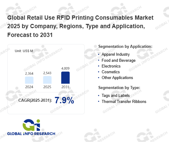 Global Info Research has recently published "Global Retail Use RFID Printing Consumables Market 2026 by Manufacturers, Regions, Type and Application, Forecast to 2032". This report systematically analyzes the global Retail Use RFID Printing Consumables market, providing multi-dimensional insights through type (Tags and Labels、 Thermal Transfer Ribbons), application (Apparel Industry、 Food and Beverage、 Electronics、 Cosmetics、 Other Applications), regional markets, and major manufacturers (Checkpoint Systems、 Avery Dennison、 Trimco Group、 Beontag、 SATO、 SML Group、 Zebra、 Honeywell、 HID Global、 NAXIS、 Xindeco IOT、 Invengo Information Technology Co. Ltd、 Alien Technology、 The Tag Factory、 Tageos), assessing the market status, trend evolution, and competitive landscape impact from 2021 to 2032.