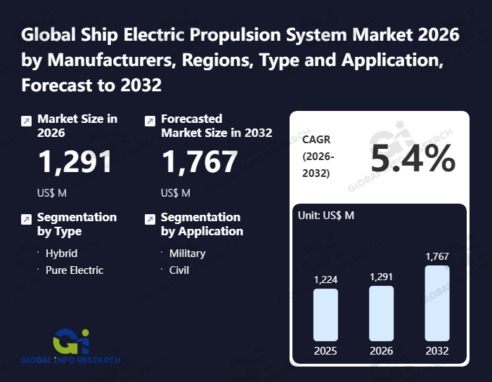 Global Info Research has recently published "Global Ship Electric Propulsion System Market 2026 by Manufacturers, Regions, Type and Application, Forecast to 2032". This report systematically analyzes the current status, future trends (2021-2032), and competitive landscape of the global Ship Electric Propulsion System market. It provides a quantitative analysis from the perspectives of type (Hybrid、 Pure Electric), application (Military、 Civil), regional markets, and major manufacturers (Wartsila、 Yanmar、 Nidec、 Leonardo DRS、 Siemens Energy、 GE、 Vetus、 Oceanvolt、 Volvo Penta、 e-Motion、 Rolls-Royce、 L3 Technologies), comprehensively assessing market opportunities and competitive dynamics.