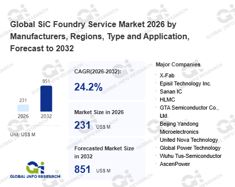 Global Info Research has recently published "Global SiC Foundry Service Market 2026 by Manufacturers, Regions, Type and Application, Forecast to 2032". This report systematically analyzes the global SiC Foundry Service market, providing multi-dimensional insights through type (SiC MOSFET、 SiC SBD), application (Automotive & EV/HEV、 EV Charging、 UPS, Data Center & Server、 PV, Energy Storage, Wind Power、 Others), regional markets, and major manufacturers (X-Fab、 Episil Technology Inc.、 Sanan IC、 HLMC、 GTA Semiconductor Co., Ltd.、 Beijing Yandong Microelectronics、 United Nova Technology、 Global Power Technology、 Wuhu Tus-Semiconductor、 AscenPower), assessing the market status, trend evolution, and competitive landscape impact from 2021 to 2032.