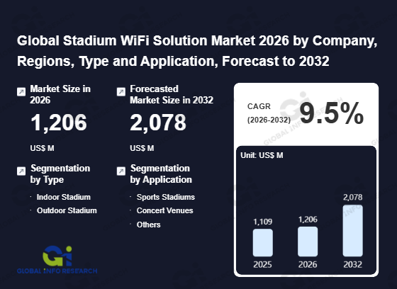 Global Info Research has recently published "Global Stadium WiFi Solution Market 2026 by Manufacturers, Regions, Type and Application, Forecast to 2032". This report systematically analyzes the current status, future trends (2021-2032), and competitive landscape of the global Stadium WiFi Solution market. It provides a quantitative analysis from the perspectives of type (Indoor Stadium、 Outdoor Stadium), application (Sports Stadiums、 Concert Venues、 Others), regional markets, and major manufacturers (Cisco、 Extreme、 AVSystem、 RUCKUS Networks、 Huawei、 FS、 Comcast、 Corning Incorporated、 Hospitality Network、 Purple、 Wow WiFi、 Groove、 Maven、 Powertec、 WDSi、 PBE Axell、 WIG、 Newbridge Wireless、 Sundray), comprehensively assessing market opportunities and competitive dynamics.