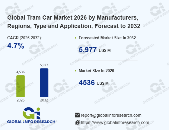 Global Info Research has recently published "Global Tram Car Market 2026 by Manufacturers, Regions, Type and Application, Forecast to 2032". This report systematically analyzes the global Tram Car market, providing multi-dimensional insights through type (Overhead Catenary Power Supply、 Ground-level Power Supply、 Energy Storage Power Supply (Batteries, Capacitors, Hydrogen Energy, etc.)), application (Urban Public Transport、 Tourism & Scenic Transport、 Airport & Transport Hub Shuttle、 Others), regional markets, and major manufacturers (Alstom、 CAF Mobility、 Stadler Rail、 CRRC Corporation、 PC Transport Systems、 Škoda Group、 UKCP、 Siemens、 Pesa、 BKM HOLDING、 Bozankaya、 Astra Vagoane Calatori、 Modertrans、 Hitachi Rail、 Durmazlar、 TATRA-YUG、 KINKI SHARYO、 Končar、 TŽV Gredelj、 Krnovské opravny a strojírny s.r.o.、 NIPPON SHARYO、 Niigata Transys、 NIZHEKOTRANS、 Alna Sharyo、 INEKON TRAMS、 GARATREN、 Electronmash LCC、 Hyundai、 China Railway Signal & Communication、 Chengdu Xinzhu Road&Bridge Machinery、 SHENYANG NEW SUNSHINE M&E SCIENCE TECHNOLOGY CO., LTD.), assessing the market status, trend evolution, and competitive landscape impact from 2021 to 2032.