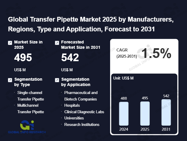 Global Info Research has recently published "Global Transfer Pipette Market 2026 by Manufacturers, Regions, Type and Application, Forecast to 2032". This report systematically analyzes the global Transfer Pipette market, providing multi-dimensional insights through type (Single-channel Transfer Pipette、 Multichannel Transfer Pipette), application (Pharmaceutical and Biotech Companies、 Hospitals、 Clinical Diagnostic Labs、 Universities、 Research Institutions), regional markets, and major manufacturers (Eppendorf、 Capp ApS、 Hamilton、 Sartorius、 Thermo Fisher、 Labnet、 Kimble-Chase、 Sarstedt、 Aptaca、 Nichiryo), assessing the market status, trend evolution, and competitive landscape impact from 2021 to 2032.
