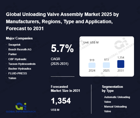 Global Info Research has recently published "Global Unloading Valve Assembly Market 2026 by Manufacturers, Regions, Type and Application, Forecast to 2032". This report systematically analyzes the global Unloading Valve Assembly market, providing multi-dimensional insights through type (Automatic Unloading Valve、 Manual Unloading Valve), application (Construction Machinery、 Energy Equipment、 Aerospace、 Shipbuilding、 Others), regional markets, and major manufacturers (Swagelok、 Bosch Rexroth AG、 Parker、 CBF Hydraulic、 Tucson Hydrocontrols、 Bucher Hydraulics、 FLUID-PRESS、 Yuken、 Emerson、 Beijing Huade Hydraulic、 Jiangsu Hengli Hydraulic、 Zhejiang Sanhua Holding Group、 Wuxi Bucher Hydraulics、 Zhejiang Dongxing Technology、 Ningbo Hoyea Machinery Manufacture), assessing the market status, trend evolution, and competitive landscape impact from 2021 to 2032.
