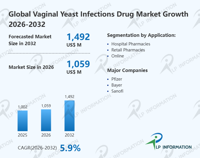 The global Vaginal Yeast Infections Drug market size is predicted to grow from US$ 1002 million in 2025 to US$ 1492 million in 2032; it is expected to grow at a CAGR of 5.9% from 2026 to 2032.