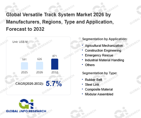 Global Info Research has recently published "Global Versatile Track System Market 2026 by Manufacturers, Regions, Type and Application, Forecast to 2032". This report systematically analyzes the global Versatile Track System market, providing multi-dimensional insights through type (Rubber Belt、 Steel Link、 Composite Material、 Modular Assembled), application (Agricultural Mechanization、 Construction Engineering、 Emergency Rescue、 Industrial Material Handling、 Others), regional markets, and major manufacturers (Camso、 Loegering、 Stryder、 Soucy、 Zuidberg、 Huanball Group、 Mattracks、 ACF Industrie、 Continental、 CNH Industrial、 Rubtrack、 McLaren Industries、 Polaris), assessing the market status, trend evolution, and competitive landscape impact from 2021 to 2032.