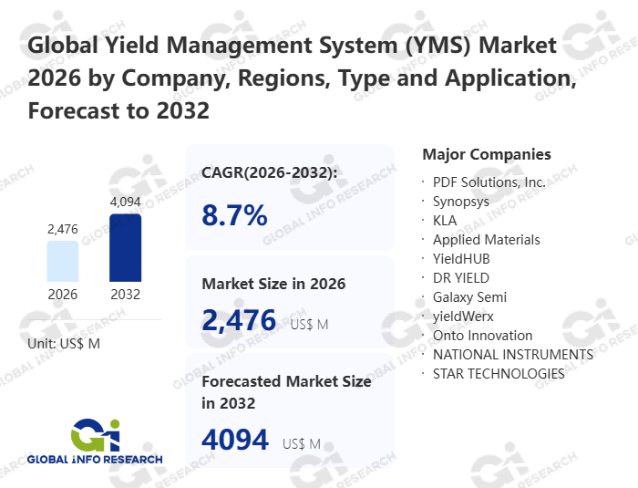 Global Info Research has recently published "Global Yield Management System (YMS) Market 2026 by Manufacturers, Regions, Type and Application, Forecast to 2032". This report systematically analyzes the global Yield Management System (YMS) market, providing multi-dimensional insights through type (Cloud Based、 On-Premises), application (IDMs、 OSATs、 Others), regional markets, and major manufacturers (PDF Solutions, Inc.、 Synopsys、 KLA、 Applied Materials、 YieldHUB、 DR YIELD、 Galaxy Semi、 yieldWerx、 Onto Innovation、 NATIONAL INSTRUMENTS、 STAR TECHNOLOGIES、 TYNE SYSTEMS、 XDM Technology、 Semitronix、 ChipGPT、 Dongfang Jingyuan Electron (DJEL)、 Shanghai Semite Software Technology、 Shanghai Univista Industrial Software Group、 Zetatech、 AIE-Tec、 FA software (Shanghai)), assessing the market status, trend evolution, and competitive landscape impact from 2021 to 2032.