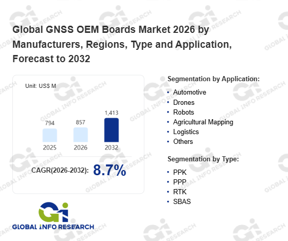 Global Info Research has recently published "Global GNSS OEM Boards Market 2026 by Manufacturers, Regions, Type and Application, Forecast to 2032". This report systematically analyzes the current status, future trends (2021-2032), and competitive landscape of the global GNSS OEM Boards market. It provides a quantitative analysis from the perspectives of type (PPK、 PPP、 RTK、 SBAS), application (Automotive、 Drones、 Robots、 Agricultural Mapping、 Logistics、 Others), regional markets, and major manufacturers (Septentrio、 Trimble、 Tersus GNSS、 ComNav Technology、 NovAtel、 Hemisphere、 Hunan BYNAV Technology Co, Ltd、 LOCOSYSTECH、 Nautikaris b.v.、 NavCom Technology、 Shanghai Huace Navigation Technology、 SparkFun Electronics、 Tianjin Unique Technology、 Topcon Positioning Systems、 Unicore Communications), comprehensively assessing market opportunities and competitive dynamics.