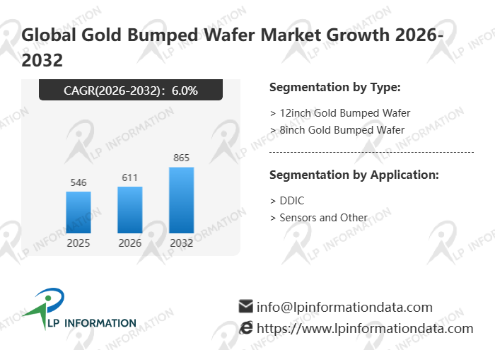 The global Gold Bumped Wafer market size is predicted to grow from US$ 546 million in 2025 to US$ 865 million in 2032; it is expected to grow at a CAGR of 6.0% from 2026 to 2032.