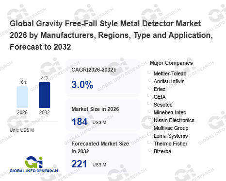 Global Info Research has recently published "Global Gravity Free-Fall Style Metal Detector Market 2026 by Manufacturers, Regions, Type and Application, Forecast to 2032". This report systematically analyzes the global Gravity Free-Fall Style Metal Detector market, providing multi-dimensional insights through type (Fully Automatic、 Semi-Automatic), application (Food Industry、 Pharmaceutical Industry、 Mining and Plastic Industry、 Others), regional markets, and major manufacturers (Mettler-Toledo、 Anritsu Infivis、 Eriez、 CEIA、 Sesotec、 Minebea Intec、 Nissin Electronics、 Multivac Group、 Loma Systems、 Thermo Fisher、 Bizerba), assessing the market status, trend evolution, and competitive landscape impact from 2021 to 2032.