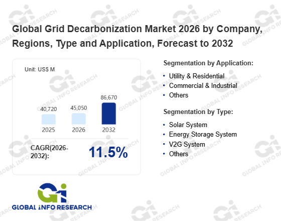 Global Info Research has recently published "Global Grid Decarbonization Market 2026 by Manufacturers, Regions, Type and Application, Forecast to 2032". This report systematically analyzes the current status, future trends (2021-2032), and competitive landscape of the global Grid Decarbonization market. It provides a quantitative analysis from the perspectives of type (Solar System、 Energy Storage System、 V2G System、 Others), application (Utility & Residential、 Commercial & Industrial、 Others), regional markets, and major manufacturers (ABB、 NEC、 GE、 BYD、 Samsung SDI、 CATL、 Aquion Energy、 Echelon、 Raytheon、 Schneider Electric、 Eaton Corporation、 Sunverge Energy、 Siemens、 Toshiba、 PowerSecure), comprehensively assessing market opportunities and competitive dynamics.