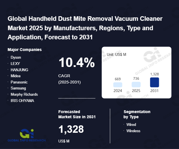 Global Info Research has recently published "Global Handheld Dust Mite Removal Vacuum Cleaner Market 2026 by Manufacturers, Regions, Type and Application, Forecast to 2032". This report systematically analyzes the global Handheld Dust Mite Removal Vacuum Cleaner market, providing multi-dimensional insights through type (Wired、 Wireless), application (Online Sales、 Offline Sales), regional markets, and major manufacturers (Dyson、 LEXY、 HANJUNG、 Midea、 Panasonic、 Samsung、 Morphy Richards、 IRIS OHYAMA、 BOBOT、 AUX、 YANGZI、 Roborock、 SUPOR、 Haier、 Puppyoo、 Deerma、 Philips、 Xiaomi、 Dreame、 UWANT、 Bear、 ECOVACS), assessing the market status, trend evolution, and competitive landscape impact from 2021 to 2032.
