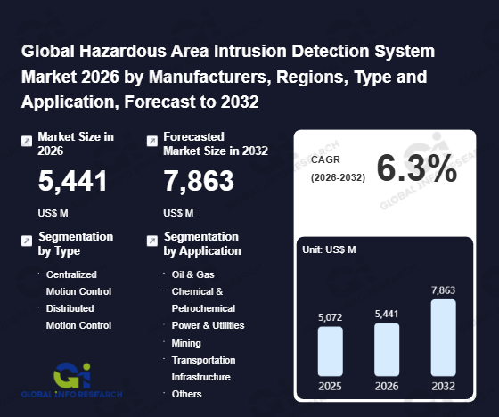 Global Info Research has recently published "Global Hazardous Area Intrusion Detection System Market 2026 by Manufacturers, Regions, Type and Application, Forecast to 2032". This report systematically analyzes the current status, future trends (2021-2032), and competitive landscape of the global Hazardous Area Intrusion Detection System market. It provides a quantitative analysis from the perspectives of type (Centralized Motion Control、 Distributed Motion Control), application (Oil & Gas、 Chemical & Petrochemical、 Power & Utilities、 Mining、 Transportation Infrastructure、 Others), regional markets, and major manufacturers (Siemens、 Rockwell Automation、 Mitsubishi Electric、 Yaskawa、 Bosch Rexroth、 Beckhoff Automation、 Omron、 Delta Electronics、 Kollmorgen、 ABB、 FANUC、 LS Electric), comprehensively assessing market opportunities and competitive dynamics.