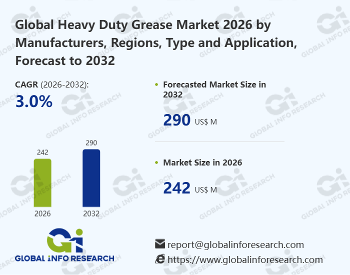 Global Info Research has recently published "Global Heavy Duty Grease Market 2026 by Manufacturers, Regions, Type and Application, Forecast to 2032". This report systematically analyzes the current status, future trends (2021-2032), and competitive landscape of the global Heavy Duty Grease market. It provides a quantitative analysis from the perspectives of type (Soap Base Grease、 Polyurea Grease、 Others), application (Aerospace、 Automotive、 Machinery Industry、 Marine、 Chemical Industry、 Others), regional markets, and major manufacturers (Shell、 Exxon Mobil、 Chevron、 Kluber Lubrication、 SKF、 Condat、 DuPont、 Huskey、 Kyodo Yushi、 Sinopec、 IKV Group、 Sumico), comprehensively assessing market opportunities and competitive dynamics.