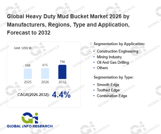 Global Info Research has recently published "Global Heavy Duty Mud Bucket Market 2026 by Manufacturers, Regions, Type and Application, Forecast to 2032". This report systematically analyzes the current status, future trends (2021-2032), and competitive landscape of the global Heavy Duty Mud Bucket market. It provides a quantitative analysis from the perspectives of type (Smooth Edge、 Toothed Edge、 Combination Edge), application (Construction Engineering、 Mining Industry、 Oil And Gas Drilling、 Others), regional markets, and major manufacturers (Caterpillar、 Komatsu、 Volvo、 Kinshofer、 Empire Bucket、 Werk-Brau、 ACS Industries、 Rockland、 Attach2、 Roo Attachments、 eiengineering、 Hogan、 Kriss Solutions、 Challenge、 Glikr Machinery、 Embrey Attachments、 Aussie Buckets), comprehensively assessing market opportunities and competitive dynamics.