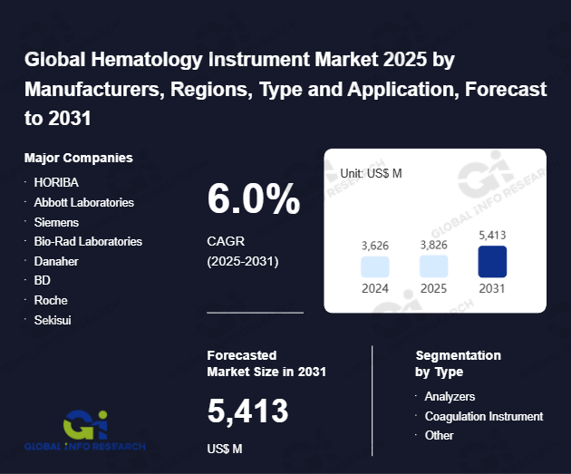 Global Info Research has recently published "Global Hematology Instrument Market 2026 by Manufacturers, Regions, Type and Application, Forecast to 2032". This report systematically analyzes the global Hematology Instrument market, providing multi-dimensional insights through type (Analyzers、 Coagulation Instrument、 Other), application (Hospital/Clinics、 Independent Diagnostic、 Laboratories), regional markets, and major manufacturers (HORIBA、 Abbott Laboratories、 Siemens、 Bio-Rad Laboratories、 Danaher、 BD、 Roche、 Sekisui、 Axis-Shield、 Chrono-Log、 Sysmex Corporation、 Stratec SE (Diatron),、 Boule Diagnostics、 Nihon Kohden、 Mindray、 DyMind、 Urit Medical、 Rayto), assessing the market status, trend evolution, and competitive landscape impact from 2021 to 2032.