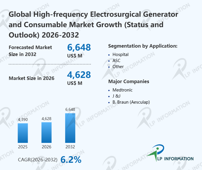 The global High-frequency Electrosurgical Generator and Consumable market size is predicted to grow from US$ 4390 million in 2025 to US$ 6648 million in 2032; it is expected to grow at a CAGR of 6.2% from 2026 to 2032.