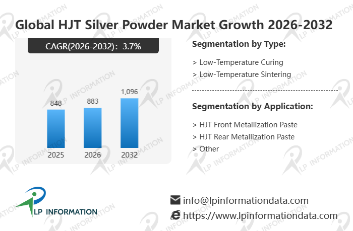 The global HJT Silver Powder market size is predicted to grow from US$ 848 million in 2025 to US$ 1096 million in 2032; it is expected to grow at a CAGR of 3.7% from 2026 to 2032.