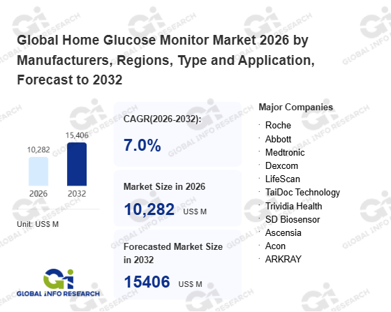 Global Info Research has recently published "Global Home Glucose Monitor Market 2026 by Manufacturers, Regions, Type and Application, Forecast to 2032". This report systematically analyzes the current status, future trends (2021-2032), and competitive landscape of the global Home Glucose Monitor market. It provides a quantitative analysis from the perspectives of type (Non-Invasive Monitoring、 Invasive Monitoring), application (Online Sales、 Offline Sales), regional markets, and major manufacturers (Roche、 Abbott、 Medtronic、 Dexcom、 LifeScan、 TaiDoc Technology、 Trividia Health、 SD Biosensor、 Ascensia、 Acon、 ARKRAY、 I-SENS、 Osang Healthcare、 AgaMatrix、 77 Elektronika、 Yuwell、 Sinocare、 MicroTech Medical、 Yicheng、 POCTech、 Meiqi Medical Equipment、 Medtrum Technologies、 SIBIONICS), comprehensively assessing market opportunities and competitive dynamics.