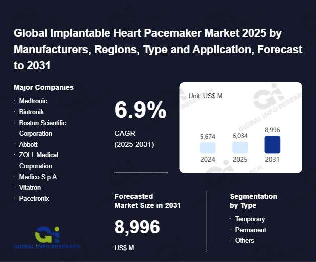 Global Info Research has recently published "Global Implantable Heart Pacemaker Market 2026 by Manufacturers, Regions, Type and Application, Forecast to 2032". This report systematically analyzes the global Implantable Heart Pacemaker market, providing multi-dimensional insights through type (Temporary、 Permanent、 Others), application (Heart Block、 Sick Sinus Syndrome、 Diagnosing Heart Diseases、 Others), regional markets, and major manufacturers (Medtronic、 Biotronik、 Boston Scientific Corporation、 Abbott、 ZOLL Medical Corporation、 Medico S.p.A、 Vitatron、 Pacetronix、 Sorin Group、 Cordis, Inc、 Neuroiz、 Abbott、 Shree Pacetronix、 Cook Medical、 Izhevsky Mekhanichesky Zavod、 CCC Medical Devices、 Pacetronix、 Cardioelectronica、 Lepu Medical Technology Co Ltd、 LivaNova PLC、 Qinming Medical), assessing the market status, trend evolution, and competitive landscape impact from 2021 to 2032.